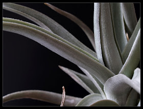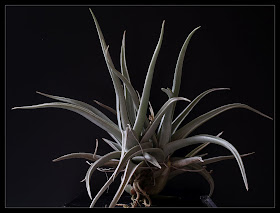 Když ke mně před pár lety tato kytka dorazila, byla celkem pěkná. Taková zase trochu jiná tilandsie s asymetrickou růžicí složenou z několika tuhých, relativně širších listů. Na jejich povrchu je patrné svislé proužkování, které je docela ozdobné. Na rozdíl od většiny tilandsií, které se ke mně dostanou, nezačala ani viditelně přirůstat, nebo jinak dávat najevo svou spokojenost. Naopak začala viditelně chřadnout. Pokud už přece jen přirostl jeden list, dva spodní viditelně odumřely. A tímto způsobem rostla téměř celé tři první roky. Když si jí někdo všiml, většinou mě upozornil, že mně chcípla kytka. Já na to odpovídal, že je ještě živá. Zkoušel jsem to na ni jak se dalo. Méně vody, více vody, co nejvíc světla, méně světla, stěhovala se na víc míst aby se konečně našlo nějaké, které se jí zalíbí.